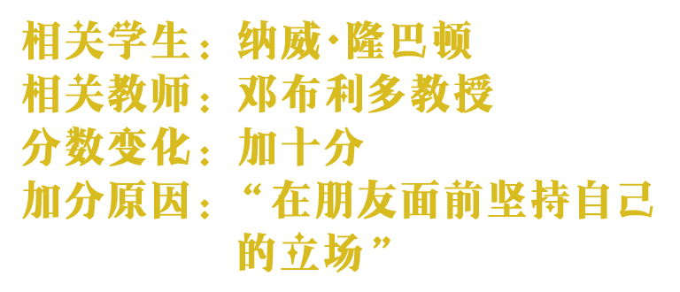 这次加分帮助格兰芬多学院反超并赢得了学院杯!按照书中的描述,这也是纳威·隆巴顿第一次为学院赢得加分。