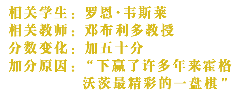 “……他下赢了许多年来霍格沃茨最精彩的一盘棋,我为此奖励格兰芬多学院五十分。”