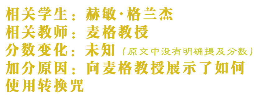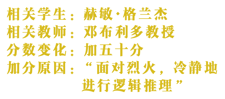 “第二项——赫敏·格兰杰小姐……她面对烈火,冷静地进行逻辑推理,我要奖励格兰芬多学院五十分。”