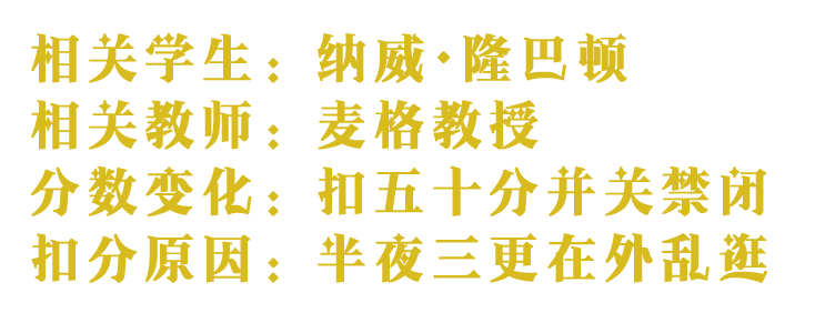 讽刺的是,在《哈利·波特与阿兹卡班的囚徒》中,当赫敏帮助了纳威的时候,斯内普教授仍然给她扣掉了五分。而并没有给纳威扣分。