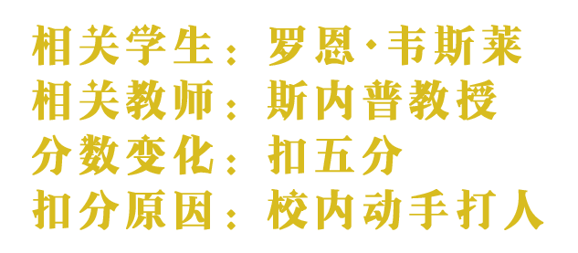 “不管怎么样,动手打人都是违反霍格沃茨校规的,海格。”斯内普用圆滑的声音说,“格兰芬多被扣去五分,韦斯莱,你应该感到庆幸,没有扣得更多。好了,快走吧,你们大家。”