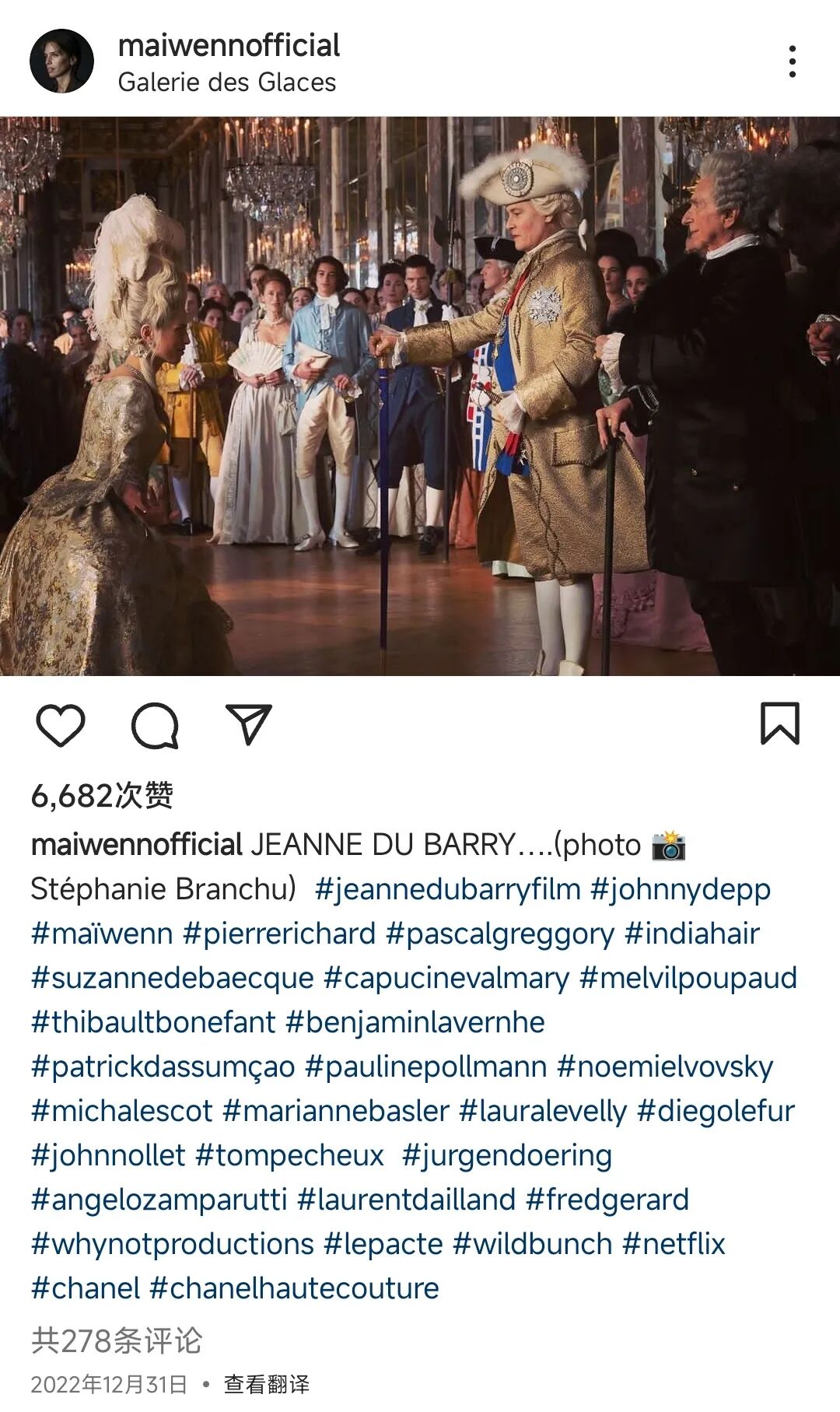 今年5月17日,德普也携新片《杜巴利伯爵夫人》亮相戛纳电影节。在这部电影中德普出演了国王路易十五,并受到了导演兼主演麦温的称赞——“作为一个美国演员,德普的法语说得很好,口音不重且措辞严谨,还非常了解法国的历史。”