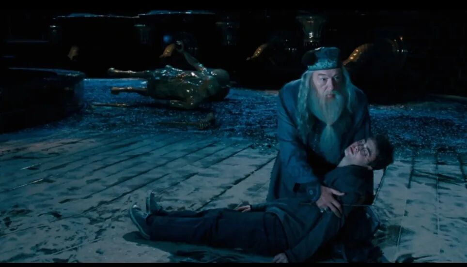 当邓布利多终于回来时两人无法避免地爆发了一场激烈的争吵(其实多半是可怜的哈利在宣泄自己的悲伤)。