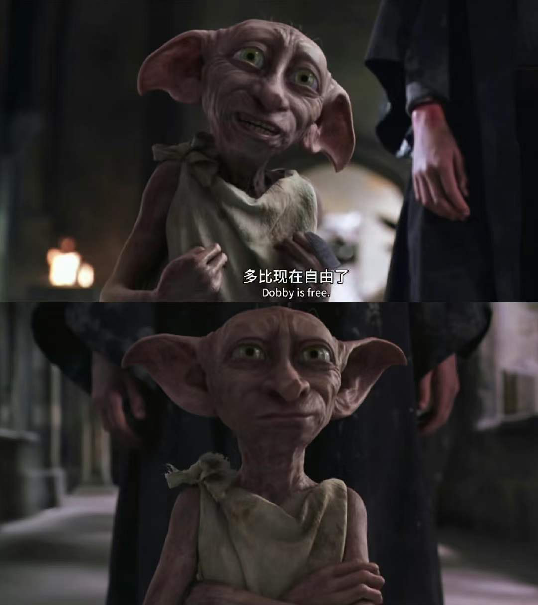 自此,多比就成了《哈利·波特》系列影迷们和书迷们非常喜爱的角色🥰,他的魅力也远不止他的搞笑。