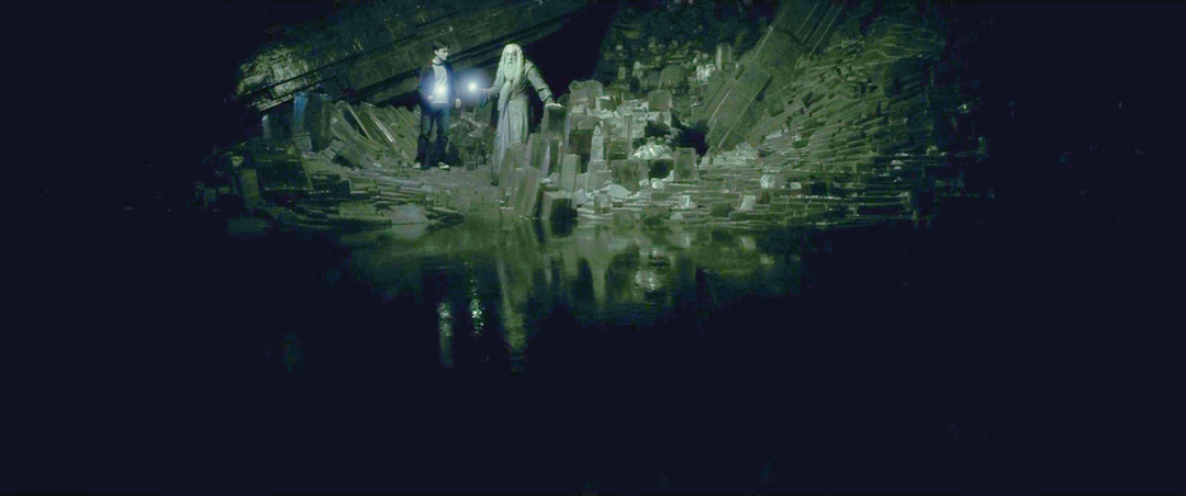 顺着海水抵达岩洞深处,邓布利多解开了伏地魔设下的障眼法,用自己的鲜血作为献祭打开了隐藏的大门🚪,眼前是一片深不可测的湖。