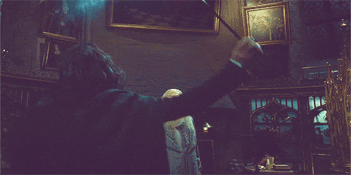 Dumbledore watched her fly away, and as her silvery glow faded he turned back to Snape, and his eyes were full of tears.