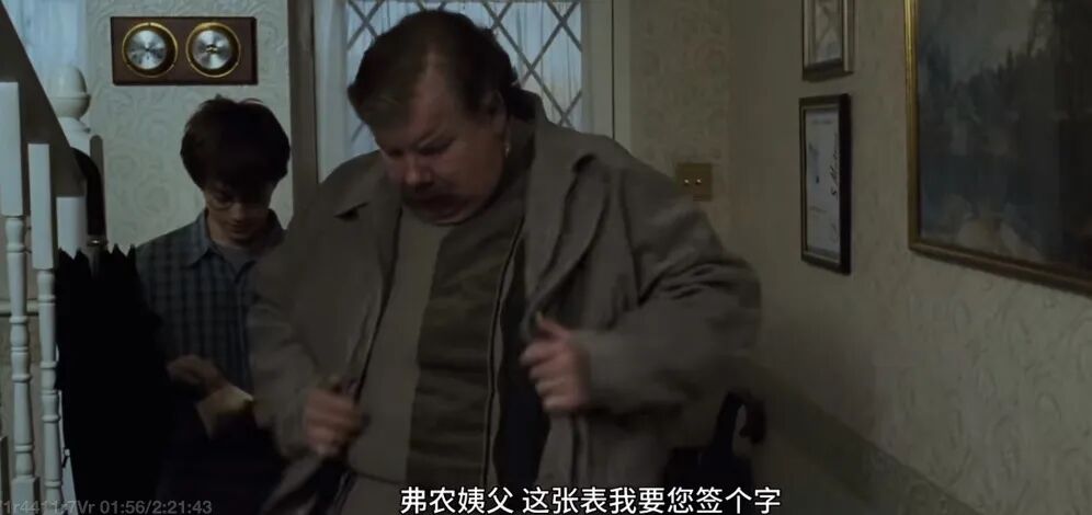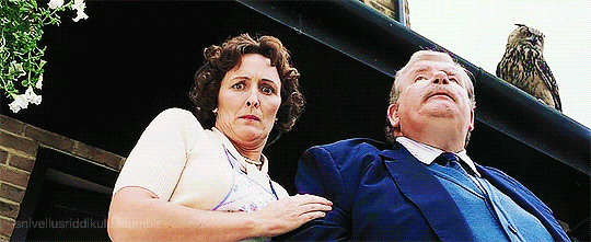 弗农姨夫带着猎枪出来和海格对峙,海格并没理会,因为他在到处寻找多年未见的哈利(很好笑的是他把达力认成了哈利),他认真地祝福哈利生日快乐后掏出了被自己压扁的蛋糕🍰。