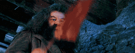 在荒无人烟的小岛🏝上看着达力手表⌚️的反光偷偷庆祝完自己十一岁生日之后,忽然一声巨响,一个巨大的身影打破了小木屋的门,海格亲自带着录取通知书📜来找哈利了。