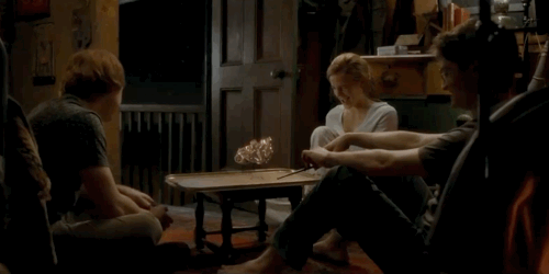 混乱中,三人组急忙幻影移行到别处,却又在咖啡馆遭到袭击。历经一番周折,他们逃到了格里莫广场12号进行暂时避难。