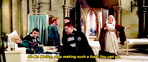 霍格沃茨魔法学校的学生如果在学校里受伤了,通常都是送到校医院由庞弗雷夫人进行诊疗。然而,有些病例的情况非常严重,或者霍格沃茨没有足够的治疗资源时,患者就必须被送往圣芒戈医院接受更深入更好的治疗了。