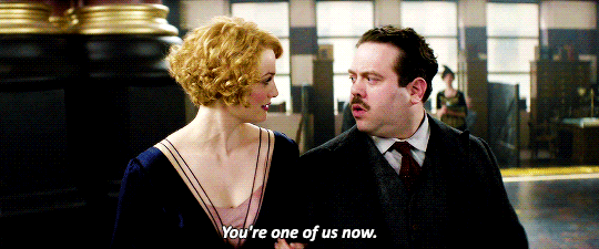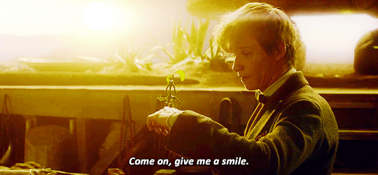 纽特是一位相当内向的人,在人类同胞面前多多少少会感到无所适从——并不是说纽特不喜欢与人打交道,只是他和神奇动物呆在一起时更为自在(雅各布是个例外哈哈哈哈哈)。他踏进他的手提箱,穿梭于嗅嗅、月痴兽还有其他令人惊奇的小动物的那一刻,你会发现突然变得如鱼得水。