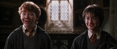 哈利和罗恩分别为格兰芬多赢得了二百分的加分,这让罗恩的脸顿时变成了鲜艳的粉红色。