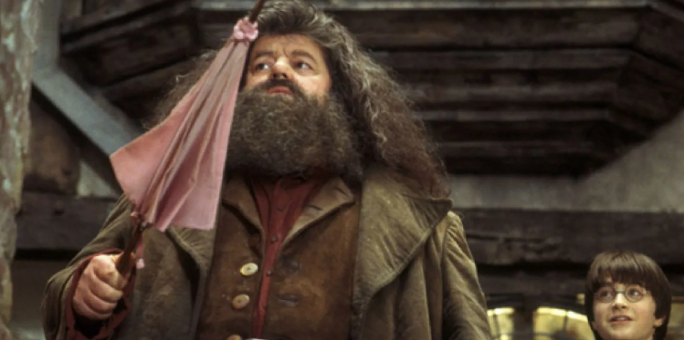 Although Hagrid rarely (or hardly) shows his magic spells in movies, he actually knows some magic. The pink umbrella he carries with him is his wand, which can be said to be the most special wand in this series.