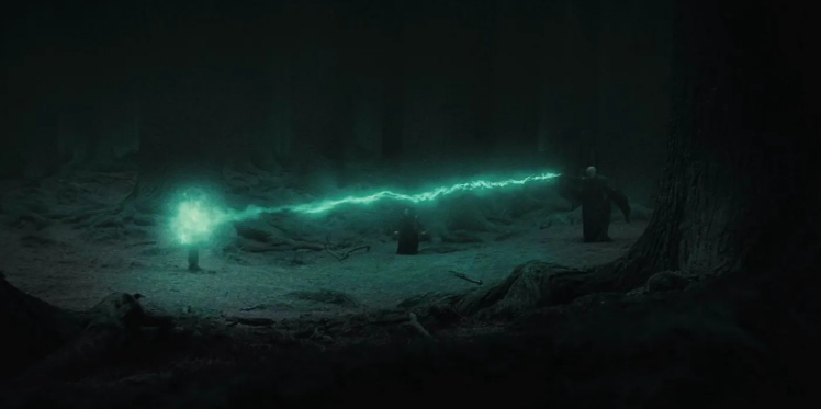 在《死亡圣器》中,哈利后来在禁林里与死神擦肩而过。这让该系列的读者和观众感到困惑,许多人想知道哈利是如何在霍格沃茨之战中从阿瓦达索命咒中幸存下来的。