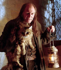 The only living thing Filch may have liked at Hogwarts Castle was his pet cat, Mrs. Norris. It was dark grey and had bulbous eyes like Filch's.