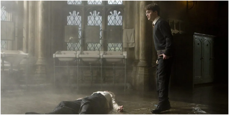 But in Half-Blood Prince, a film in which the director seems not to have paid the lighting crew, Harry almost kills his classmate. He used Sectumsempra on Malfoy, causing Malfoy to bleed and almost die. It is the first, and only, moment we see Harry come close to murdering anyone.
