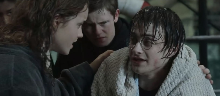 The second task of the Triwizard Tournament is for the champions to rescue their most important people. After the underwater challenge, Hermione was immediately concerned about Harry, who was nearly freezing, and praised him.