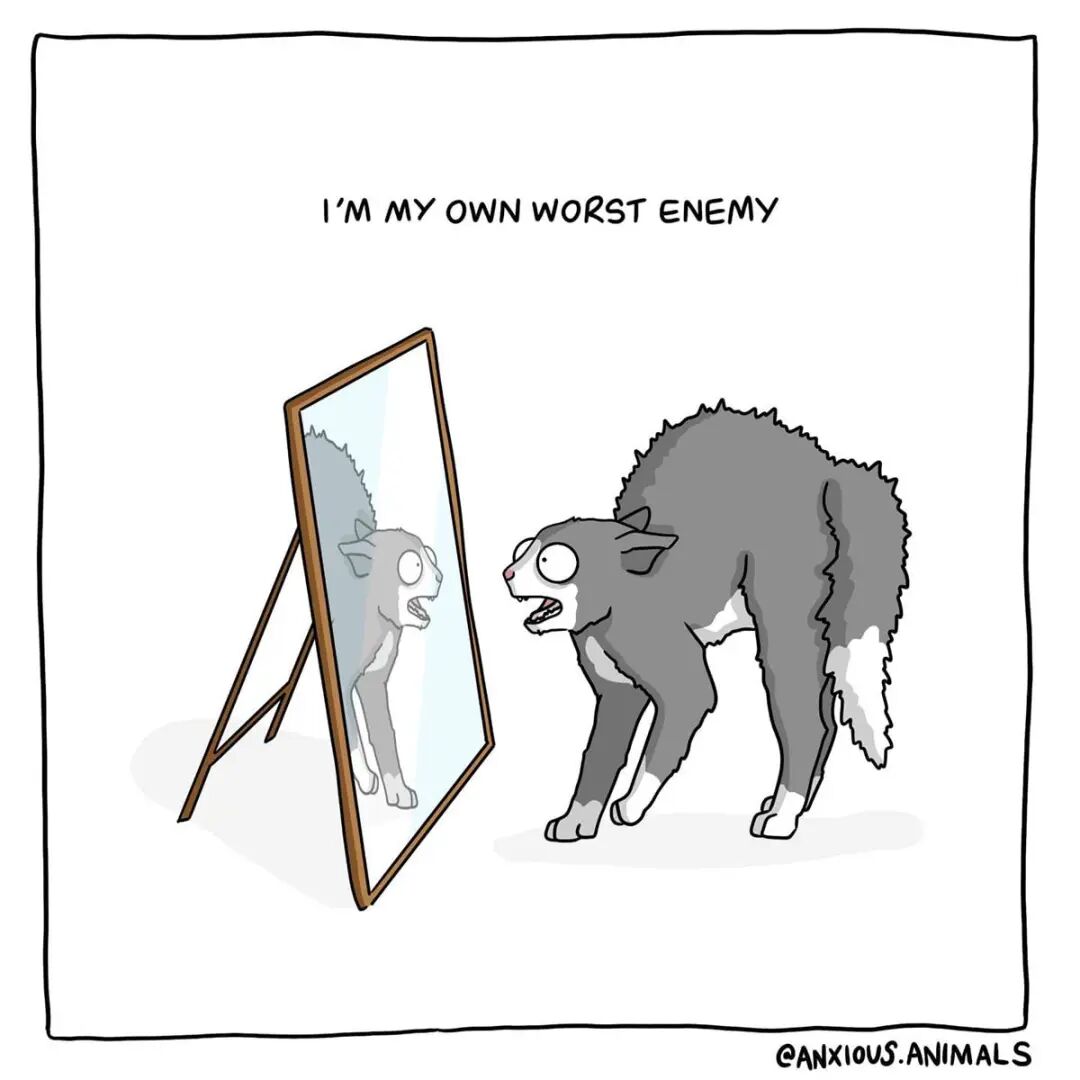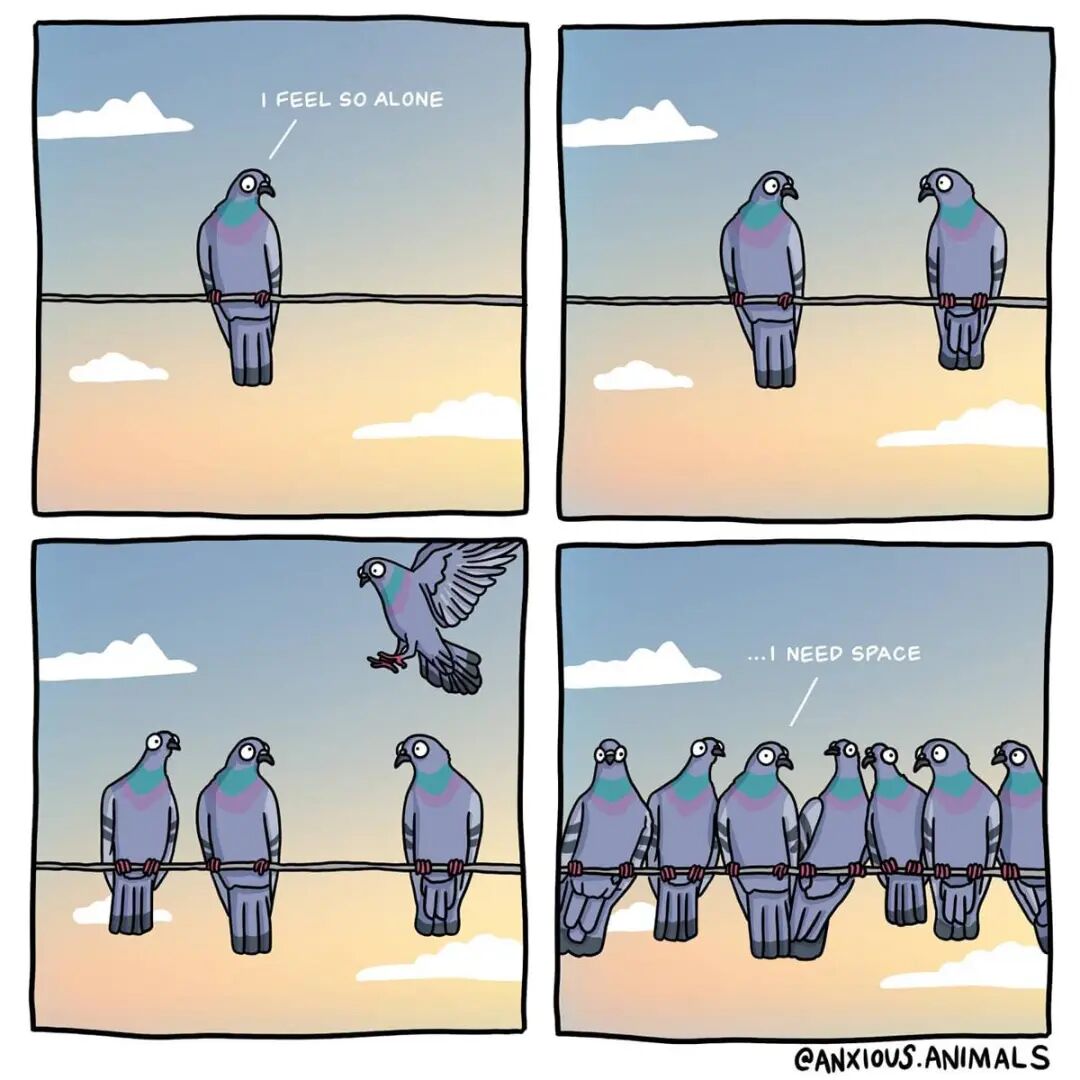 来自澳大利亚的一位名叫艾梅·威尔逊的插画家,有段时间就陷入了焦虑之中,她尝试通过绘画将这种负面情绪排解掉,于是,她将动物拟人化,创作了一系列可爱且富有创意的迷你插画,这些画作表达了她的感受,同时,也让众多时时陷入焦虑中的人产生了强烈的共鸣。