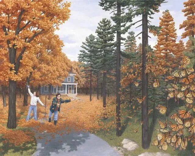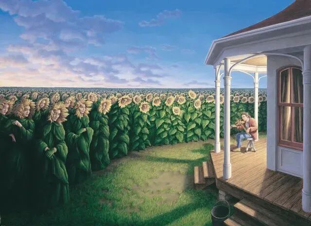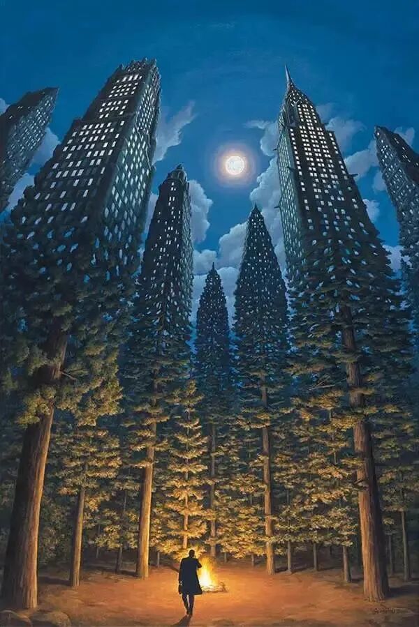 接下来小绛要跟大家分享的这位艺术家,他创作的作品就有这样神奇的魔力,堪称光学幻觉艺术,这位艺术家就是来自加拿大的插画师罗伯特·贡萨尔维斯,他的画作不可思议,又让人十分着迷。你可不要轻易被他迷惑,从他的画中,第一眼看是一种事物,但看完第二遍,它又变成了另一种完全不相干的事物。