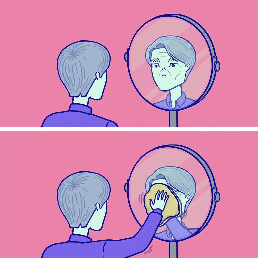 9、一个老人正在擦拭镜子