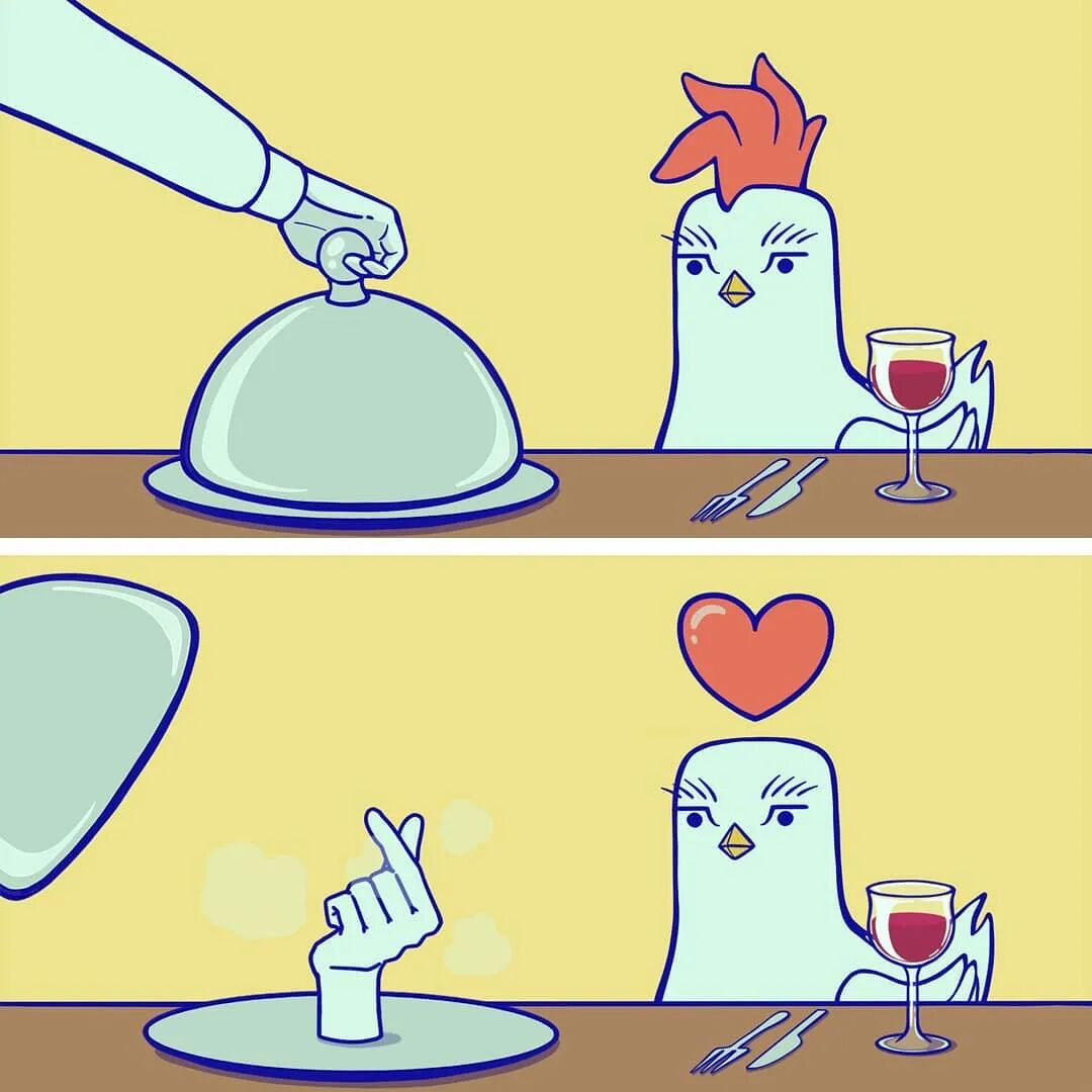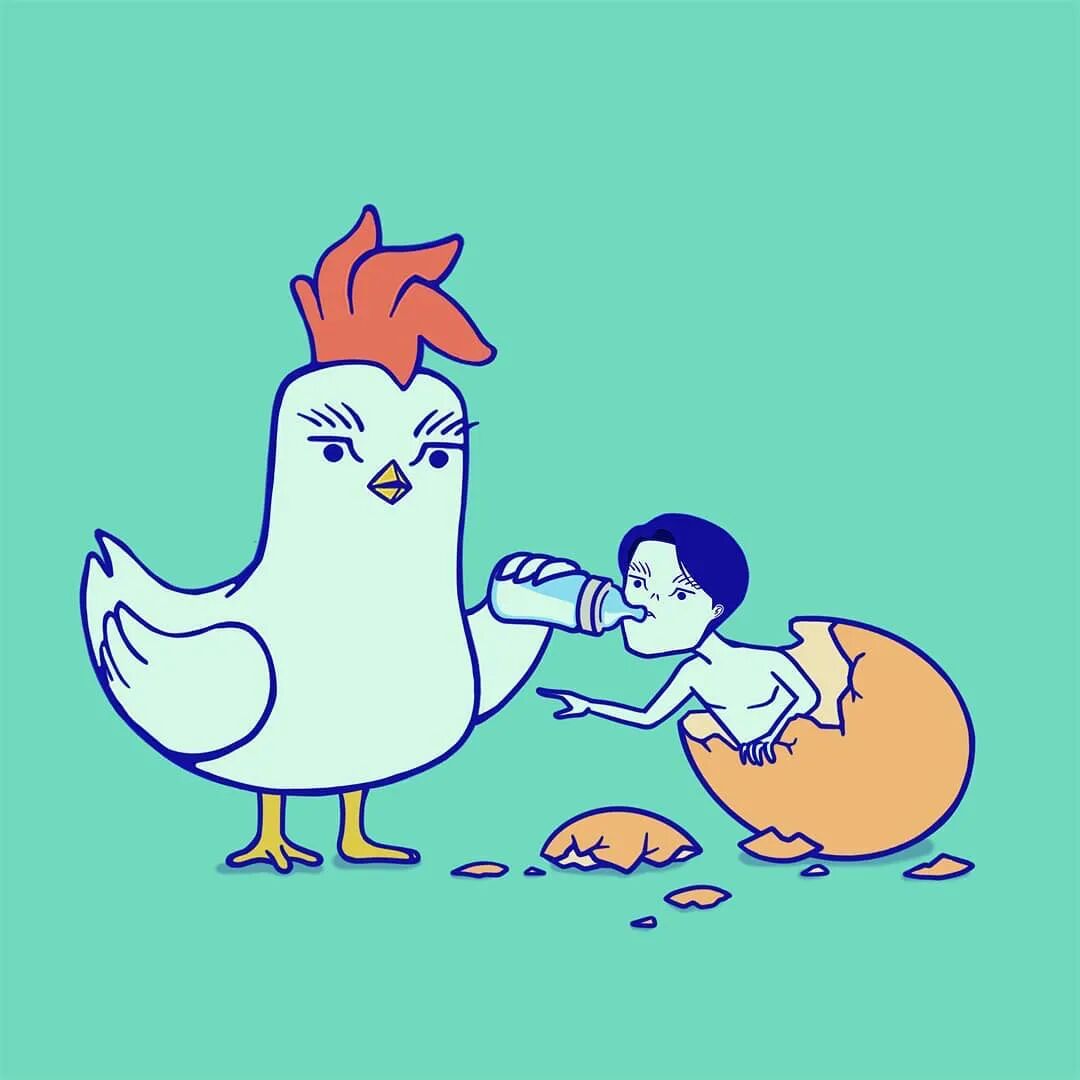 今天,就让我们再来认识一位擅于绘制黑色幽默漫画作品的漫画家,他来自韩国,名字叫洪雷。在这位漫画家笔下,人与动物可以互换身份,不仅如此,人类还可以和动物结合到一起,例如:人类的头长在公鸡身上,而公鸡的头长到了人类身上。这样的结合本身就很无厘头,不过,这种换位思考的方式,会让我们从另一个角度去思考我们的生活,以及我们周边的事物。