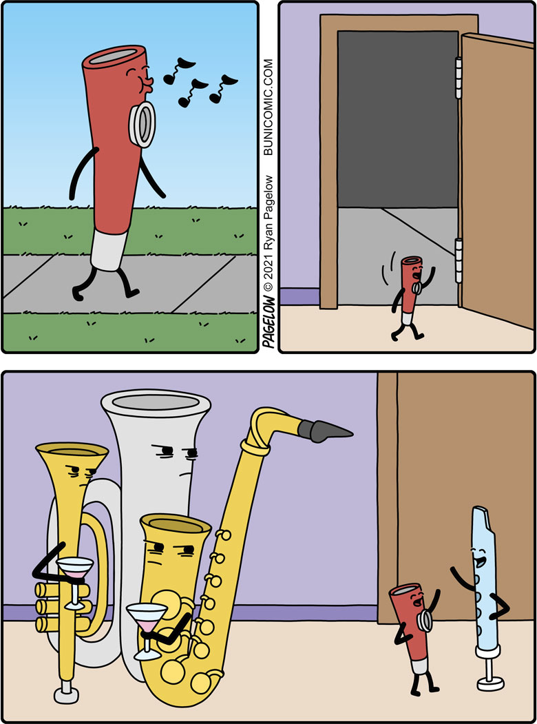 随着时间推移,多格漫画中的主角布尼也迎来了他的伙伴,布尼是一个胆小、善良又容易害羞的人,然而,他的父亲拥有和他相反的性格,每当遇到同一件事时,布尼和他的父亲做出的举动截然相反,让人不禁捧腹大笑。除了搞笑场景外,在这组多格漫画中,还有爱情故事的存在,布尼有一个暗恋的女孩,名字叫做布尼女郎,遗憾的是,这个女孩有一个强壮的男朋友,并且这个女孩也不喜欢布尼,布尼凭借一厢情愿的痴心,发生了许多让人啼笑皆非的故事。