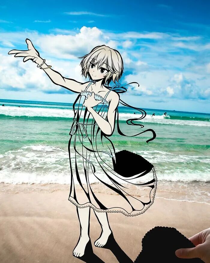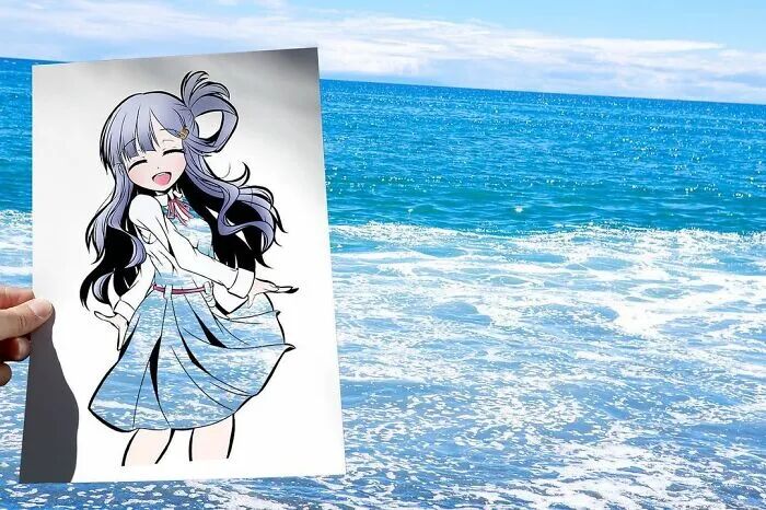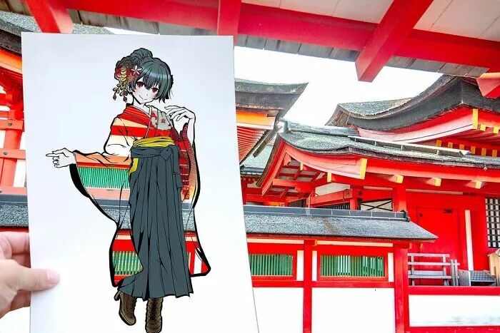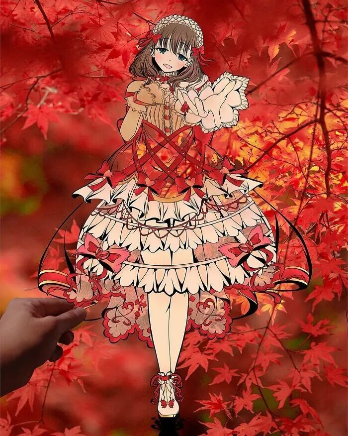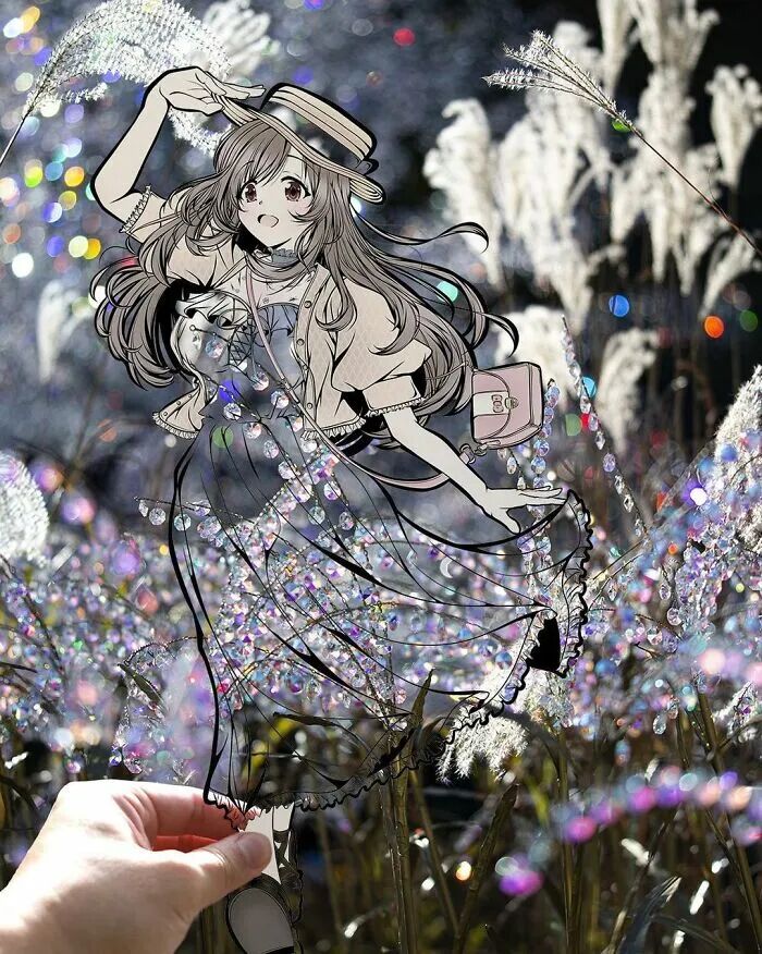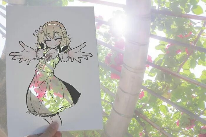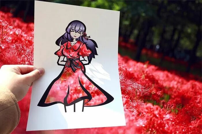 事实上,这并不是在毁掉自己的画作,而是用另外一个形式进行展现。干邑在裁剪掉漫画人物的衣服和装饰后,会根据漫画人物的特征,选择相接近的自然风景进行拍摄,这样一来,自然风景就成了干邑漫画人物的服装和装饰。恰到好处的风景,让整幅漫画变得特别起来,同时也为漫画作品增光不少。