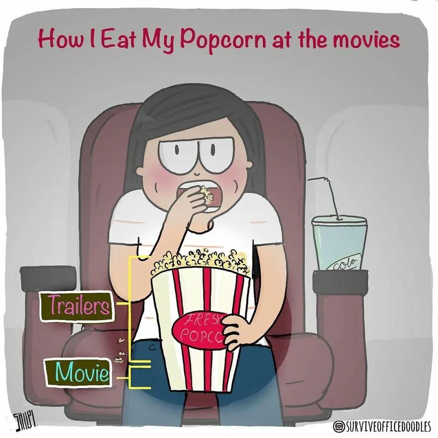 10、我在电影院是怎样吃爆米花的。