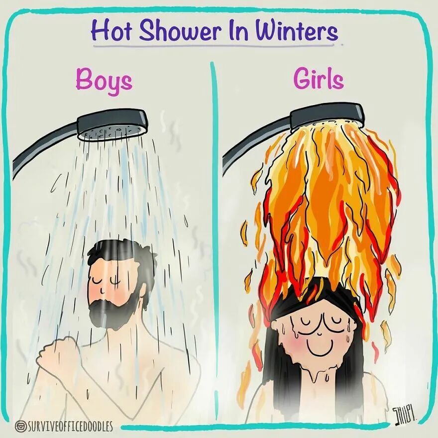 15、洗澡时,男女对水温的要求,简直是两个极端。