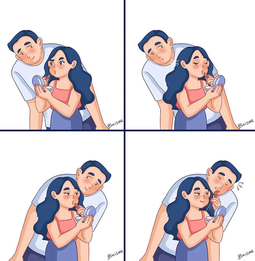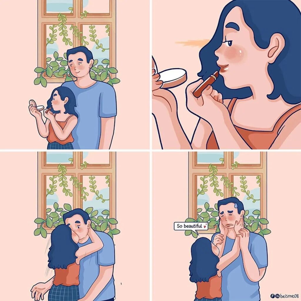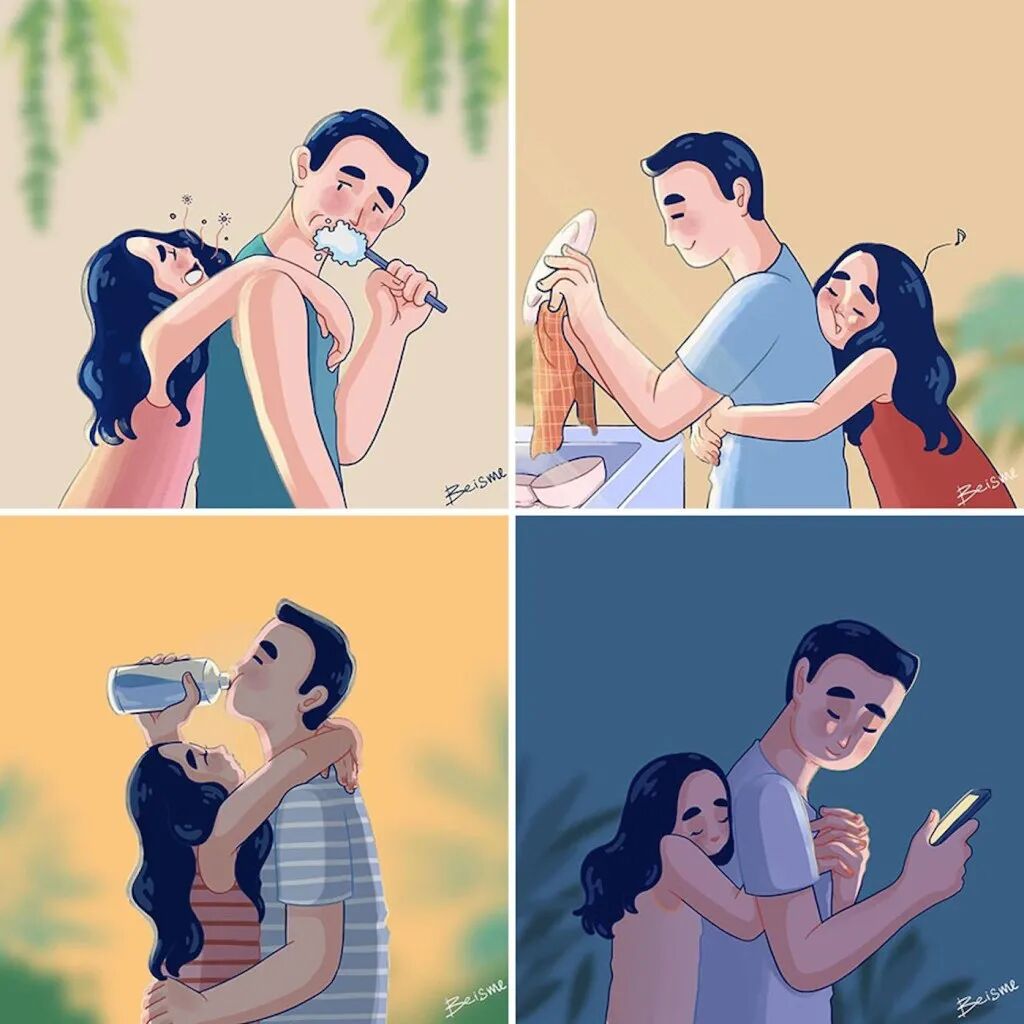 前不久,一位名叫隆寿的插画家,就拼接一组描绘她与自己恋爱对象日常生活的插画作品,受到许多人的关注。恋爱是一件甜美的事,同时也是一件复杂的事,因为在确定恋爱关系后,我们就开始有了彼此,会关注对象的生活与心情。