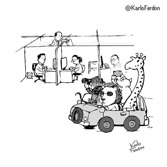 “对我来说,想出一个点子是最耗时的,可能需要很长时间,但在画漫画时,却可以在一个小时内完成一个作品,或者一个半小时,这取决于细节精细程度!”下面,我们就一起欣赏一下这位艺术家创作的,没有一个字,却人人都能看懂的幽默漫画作品吧。
