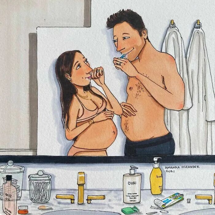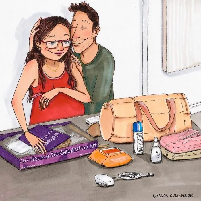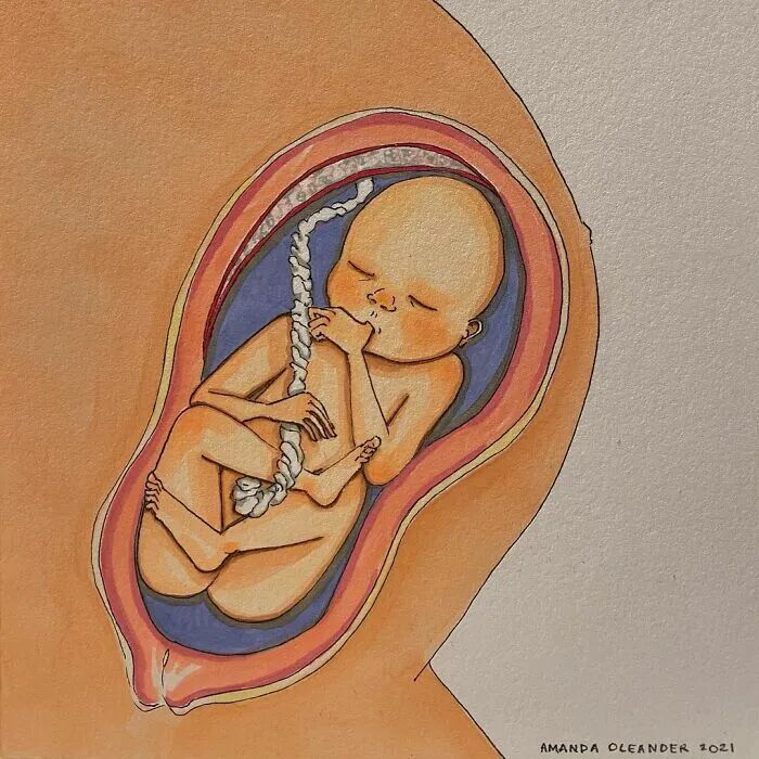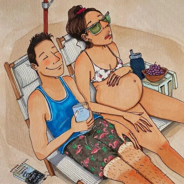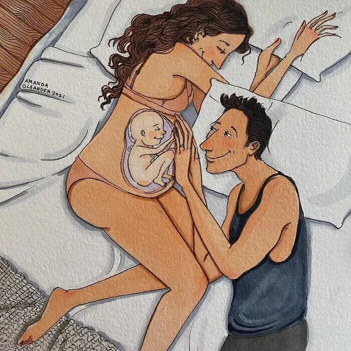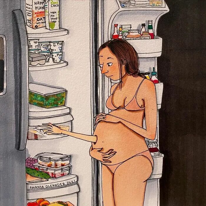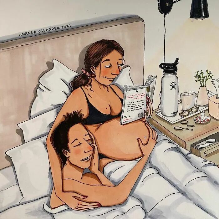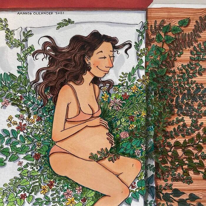 插画家阿曼达就用插画的形式,记录下了自己的怀孕过程,包括那些辛苦和感动,从最初得知这个好消息时候的欣喜,到整个孕期身体的不适,以及生产后情绪的变化,阿曼达的插画描绘得太真实了,饥饿、呕吐、便秘、失眠、妊娠纹、情绪紧张、身材变形......这几乎是每个经历过怀孕女性的心路历程。