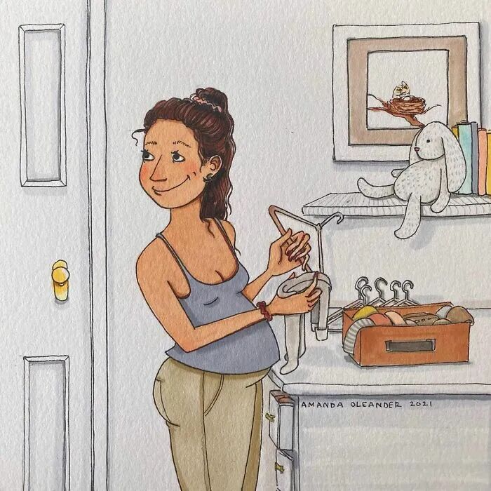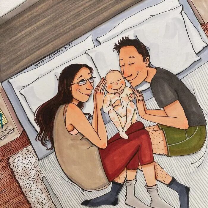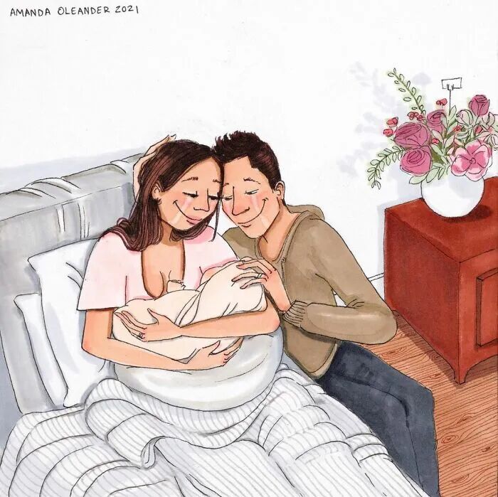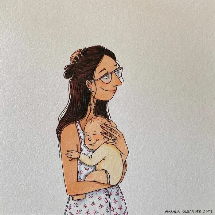 阿曼达虽然还在养育新生儿的焦头烂额中,但是她还是会抽出时间,将这些艰难、有趣、神奇和美好的时光画出来,她希望自己能够一直坚持下去,这会是送给孩子的第一份,关于爱的礼物。