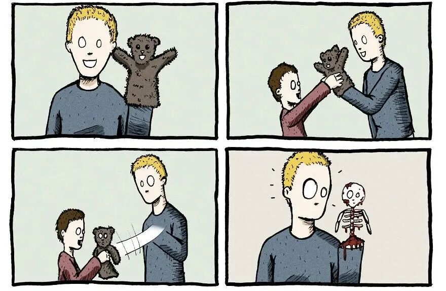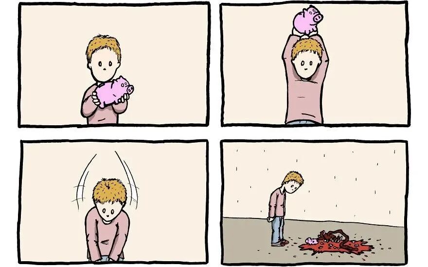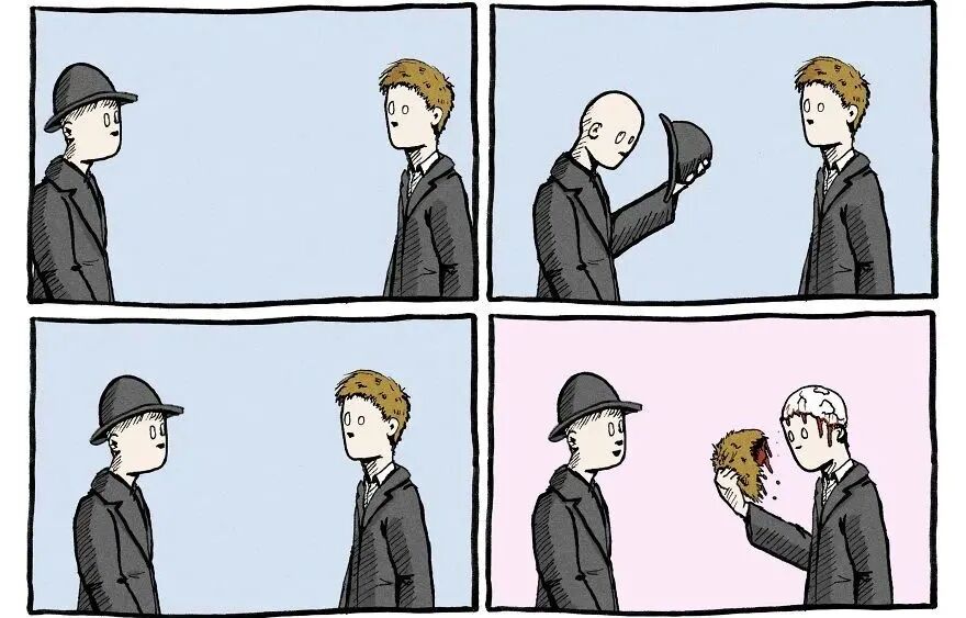雷米·拉斯科从去年开始创作这种风格的作品,他的目的就是让沮丧的人们能够发笑。画画对他来说,是很容易的一件事,最困难的是找一个好的切入点,以及在四幅画面中怎么组织情节,十分具有挑战。