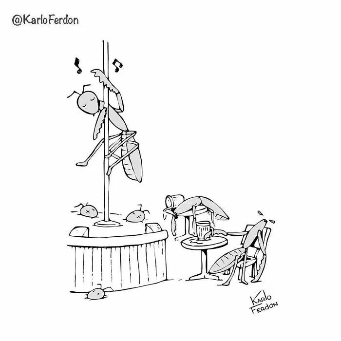 短小简单的漫画,就是一种快速艺术家思想的方法,来自智利的漫画家卡洛·费登就凭借一组简单、极简的漫画作品在众多同类作品中脱颖而出,他的这些漫画中没有一个文字,却表达出了背后隐藏的含义。有的时候,一幅漫画无需任何语言,就能让人微笑。