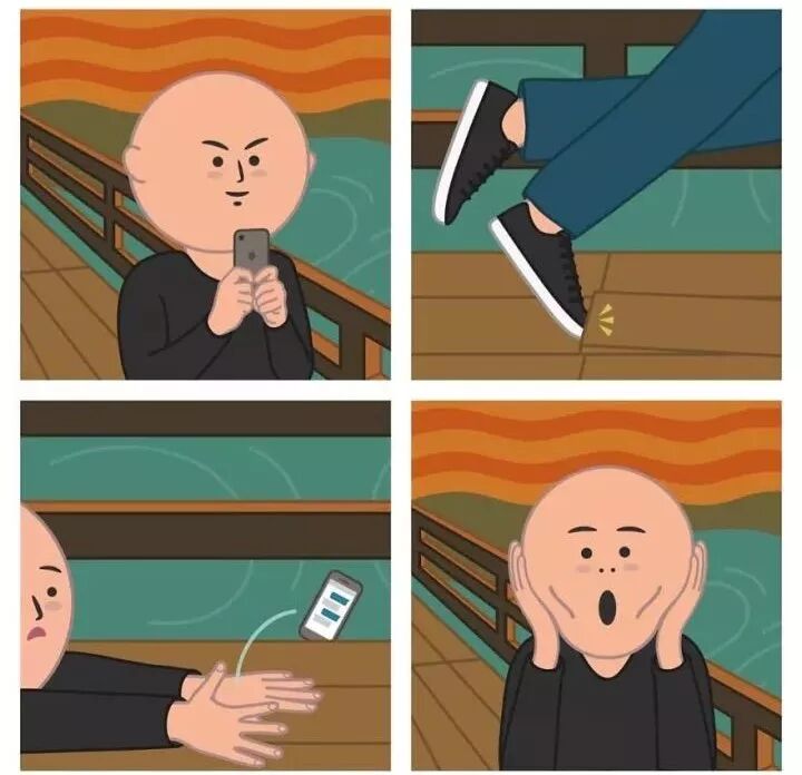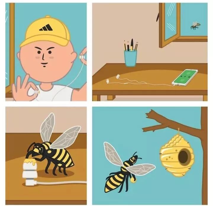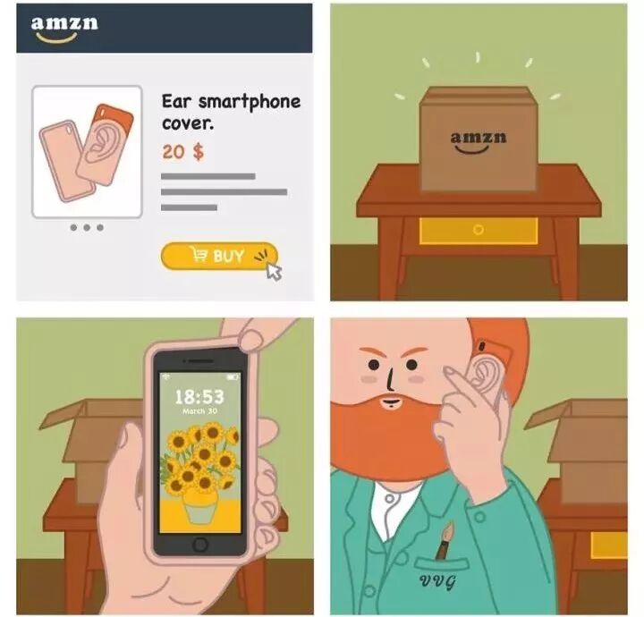 在Disse的作品中可以看到许多世界名画的身影,也可以看到当下社会最为流行的问题。譬如:世界名画《尖叫》的由来,原来是因为在桥上刷手机,一不小心掉河里了、一直迷糊的蜜蜂误将耳屎当成了蜂蜜、凶手用枕头杀人后法院却宣判枕头等等。