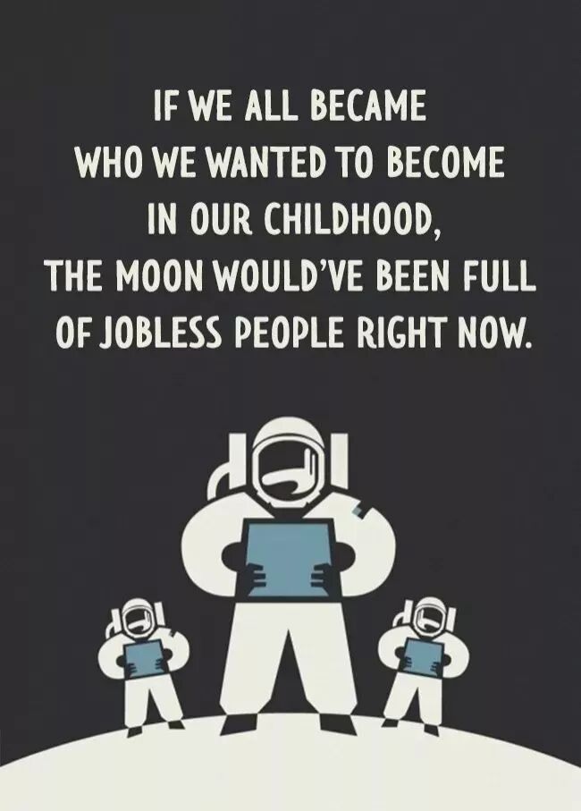 4、假如我们每个人都实现了小时候的梦想,世界会变得怎么样?答案就是,月球上会有很多无所事事的年轻人。