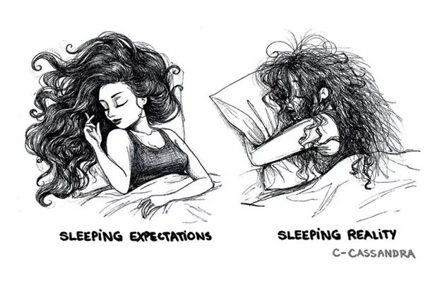 睡醒后的理想发型与现实中乱糟糟的真相。