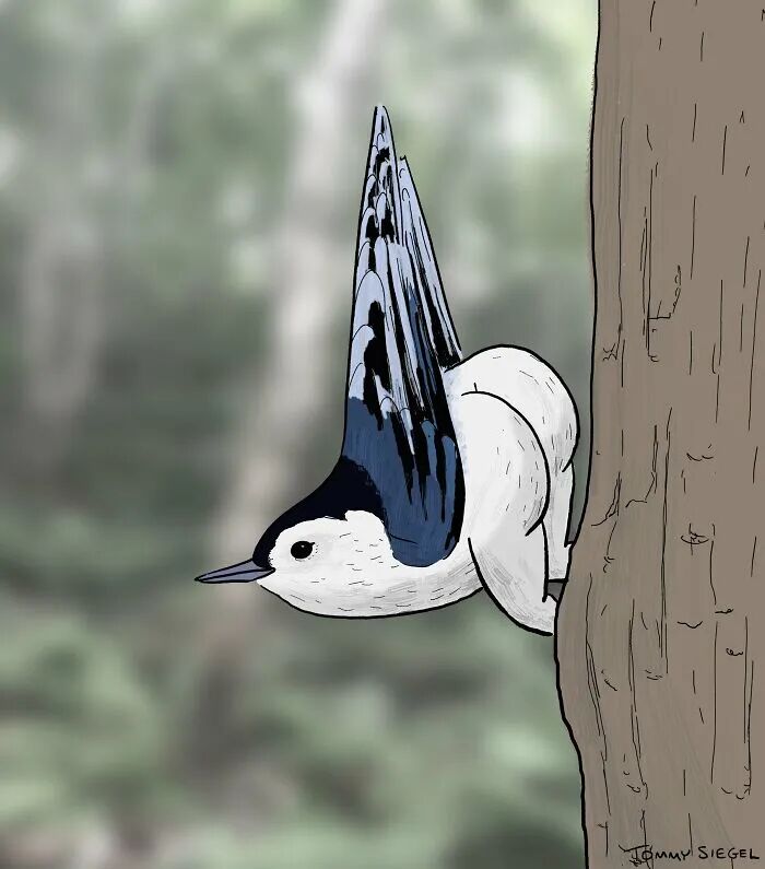 所以,艺术家们在画鸟的时候,都会尽可能还原每一只鸟的动作、身形、神态,然后将其进行还原。当然,这仅仅是对于写实画法而言。最近国外一位名叫汤米·西格尔的艺术家,因为自己的鸟类漫画被骂上热搜,这究竟是为啥呢?