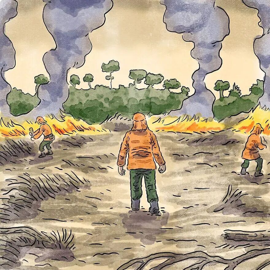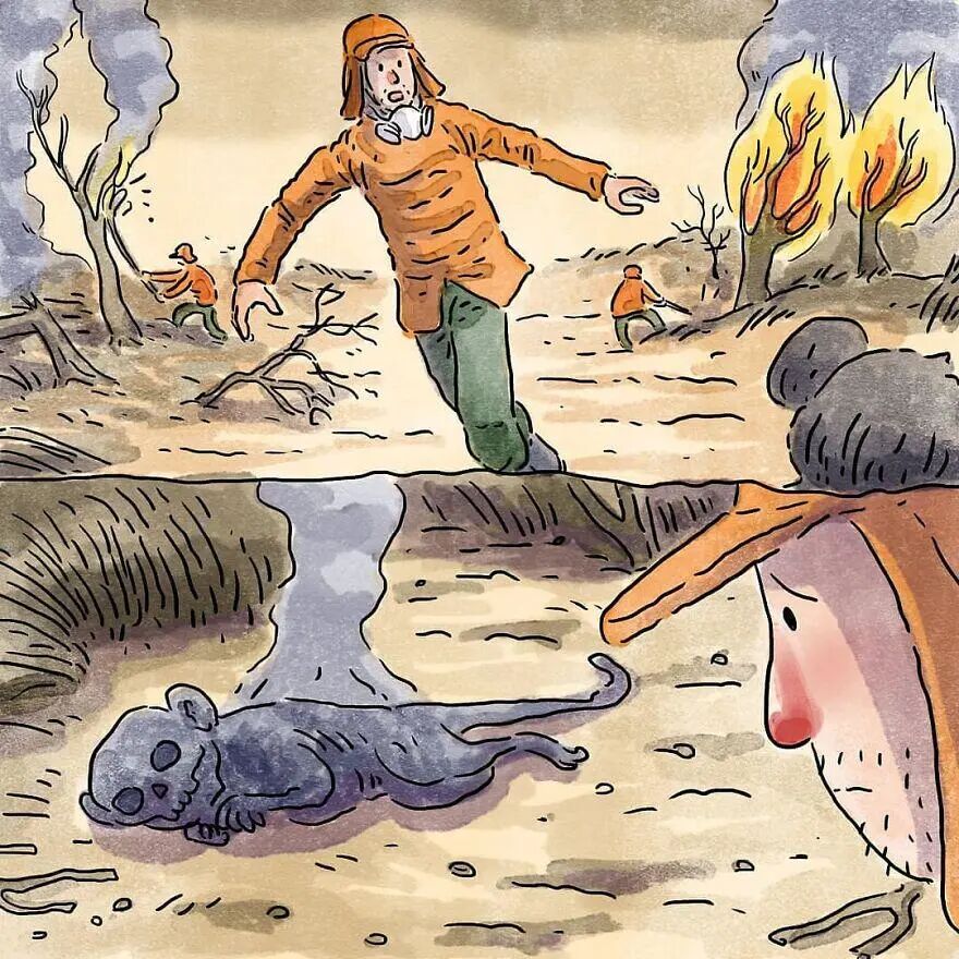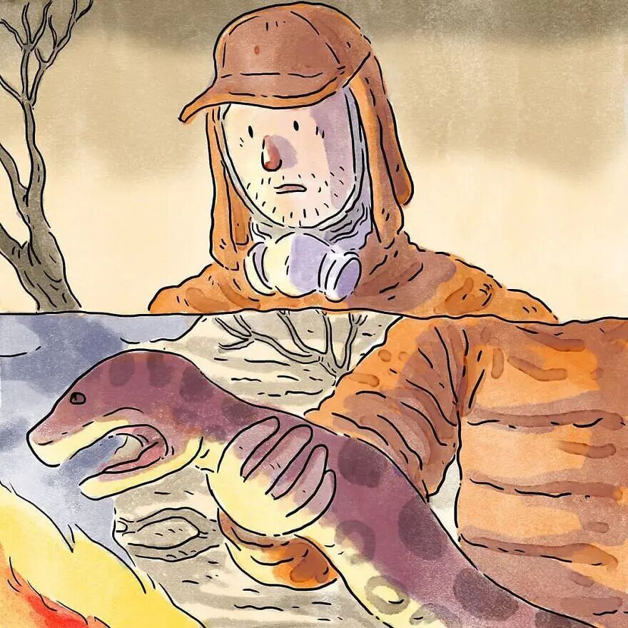 插画家并没有用激烈的场景去表现这两组漫画,反而娓娓道来,像是讲述一个普通的故事,而这个故事就曾真实发生过,这就是最难能可贵的地方,简单的小故事不失人性光环,往往最能触动我们内心。接下来,就让我们一起来看看这两个漫画故事吧。
