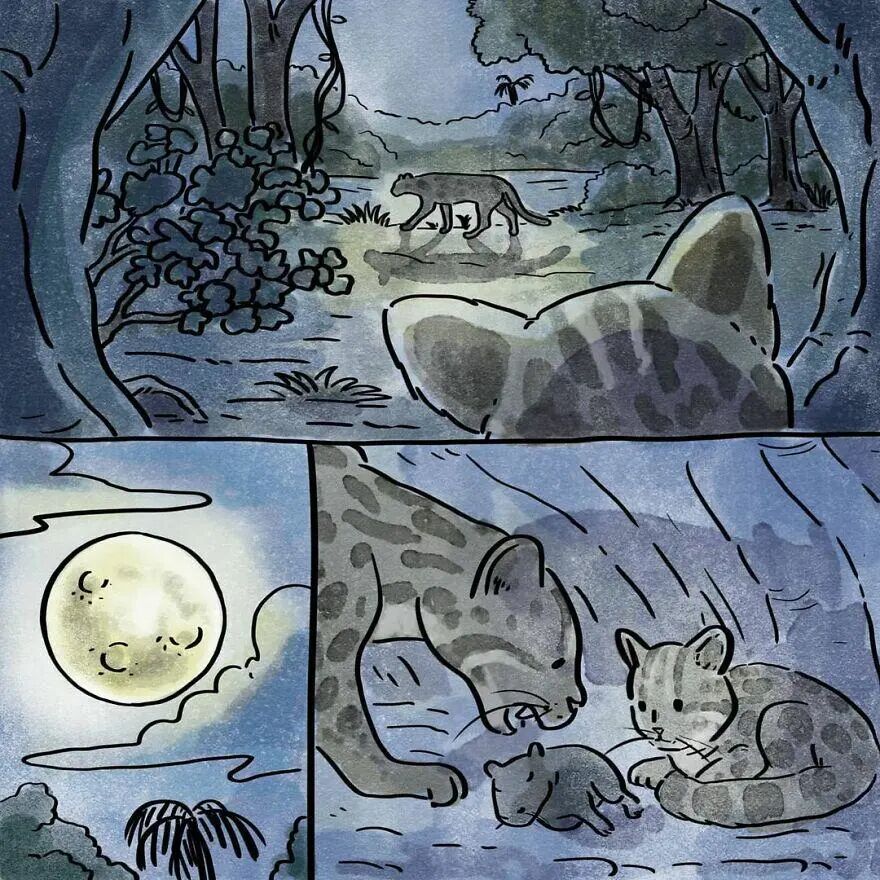 正因为如此,这位漫画家也被称为“视觉叙事大师”,今天,小绛就要为大家讲述这位艺术家创作诸多漫画里,其中的2个故事。这两个故事都是关于动物的,一个讲述人与动物的故事,另一个讲述的是猎豹母亲与孩子的故事。一个关于感恩,一个关于母爱。