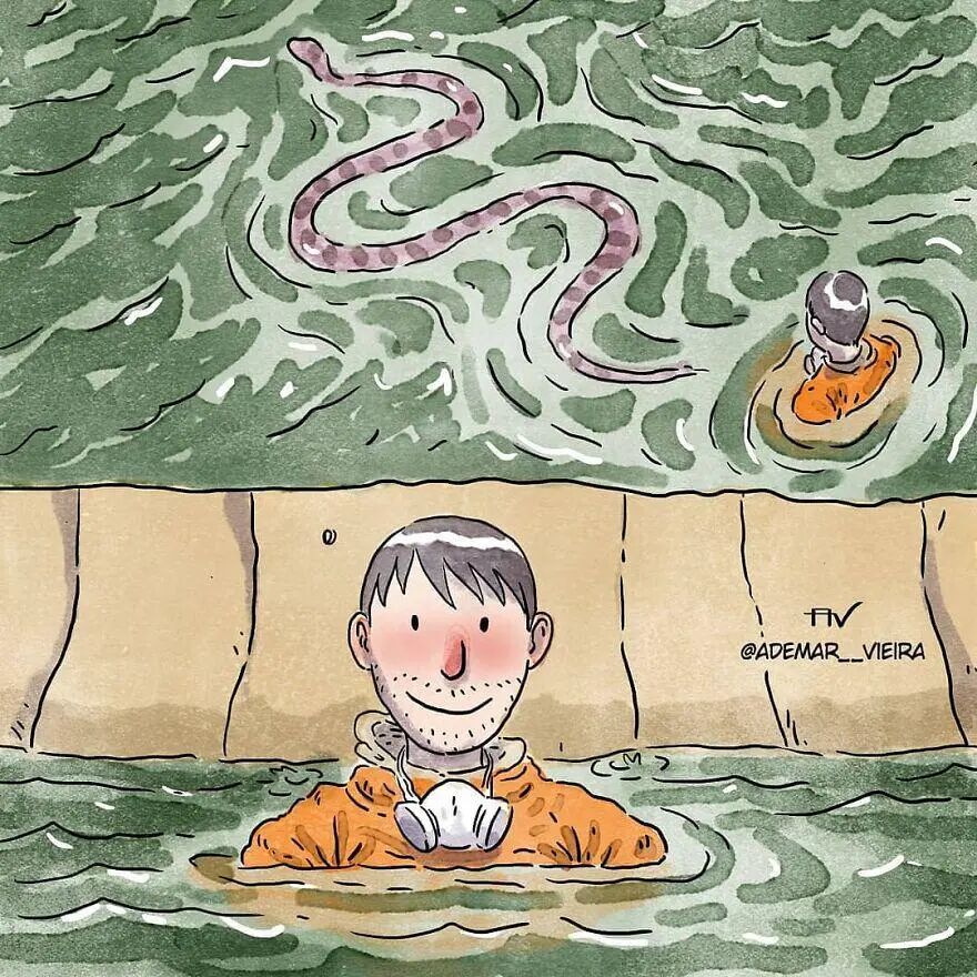 来自巴西的插画家阿德马尔·维埃拉,就是一位擅长用漫画作品记述我们这个世界真实发生过的,那些让人感动的故事的艺术家,涉及的主题包括社会不公正、孤独、养育子女等现实话题。他的作品虽然没有一个字,但就是这种无声的叙述,直截了当地击中了每个人的心。