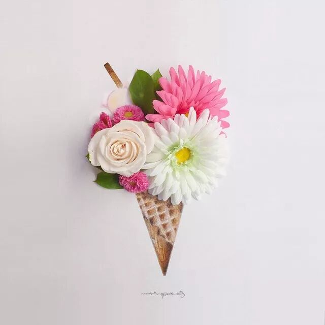 这不,在他的一组创意摄影作品中,他就将美丽的花儿“嫁”给了颇有才气的漫画,当花朵与漫画结合后,浪漫的童话氛围就产生了,一幅幅小清新味道十足的照片,呈现出了一种3D立体感,既有创意又有美感。