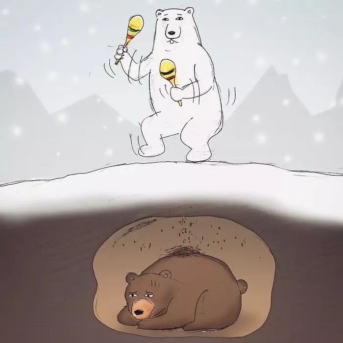 插画分很多不同的种类,幽默性的插画是其中的一种,它通过讽刺、映射、双关等表现手法,让人在发笑的同时,还能感受到艺术家所揭露的社会问题以及生活中不通情理之处,引人发笑也引人深思。