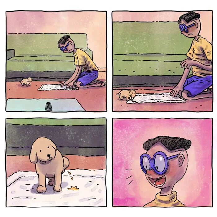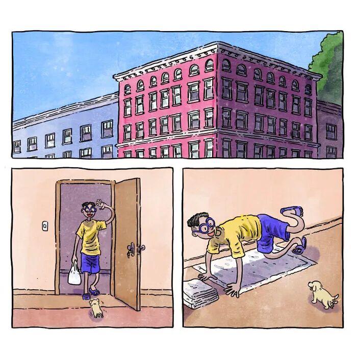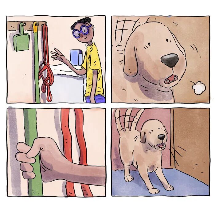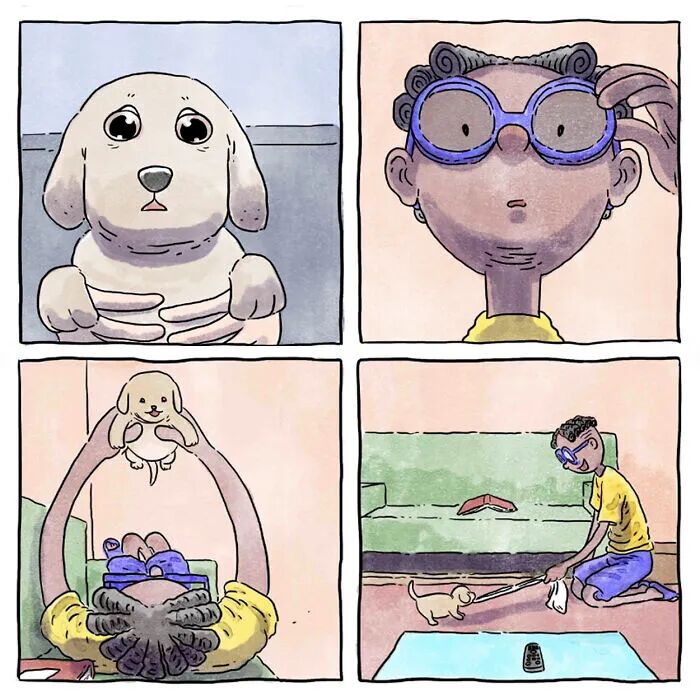 这就是漫画家阿德马尔·维埃拉最新绘制关于宠物的漫画作品,在这些平常又简单的小事中,让人看到人与宠物之间真实又美好的故事,通过这些漫画故事,也告诉人们喂养一只宠物需要付出的代价。