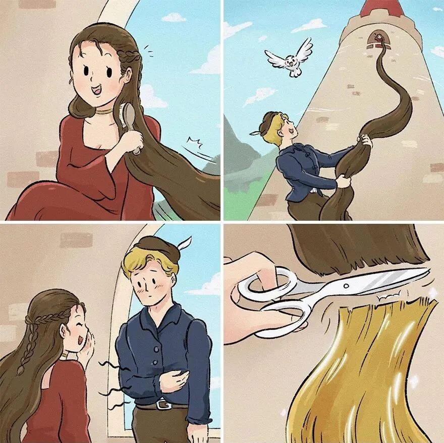 因为一次又一次的剪头发,长发公主头发变短了。
