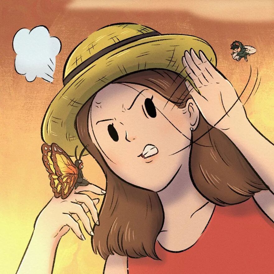 蝴蝶小姐跟苍蝇小伙挥手道别。