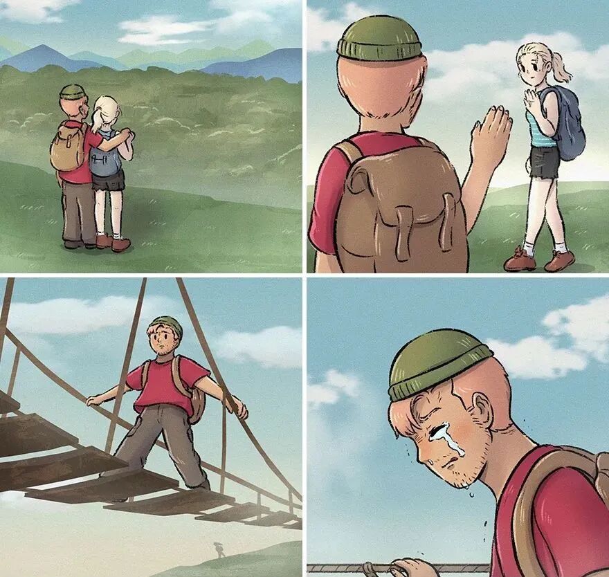 在这里他们选择分开,男孩忍着眼泪继续前进。