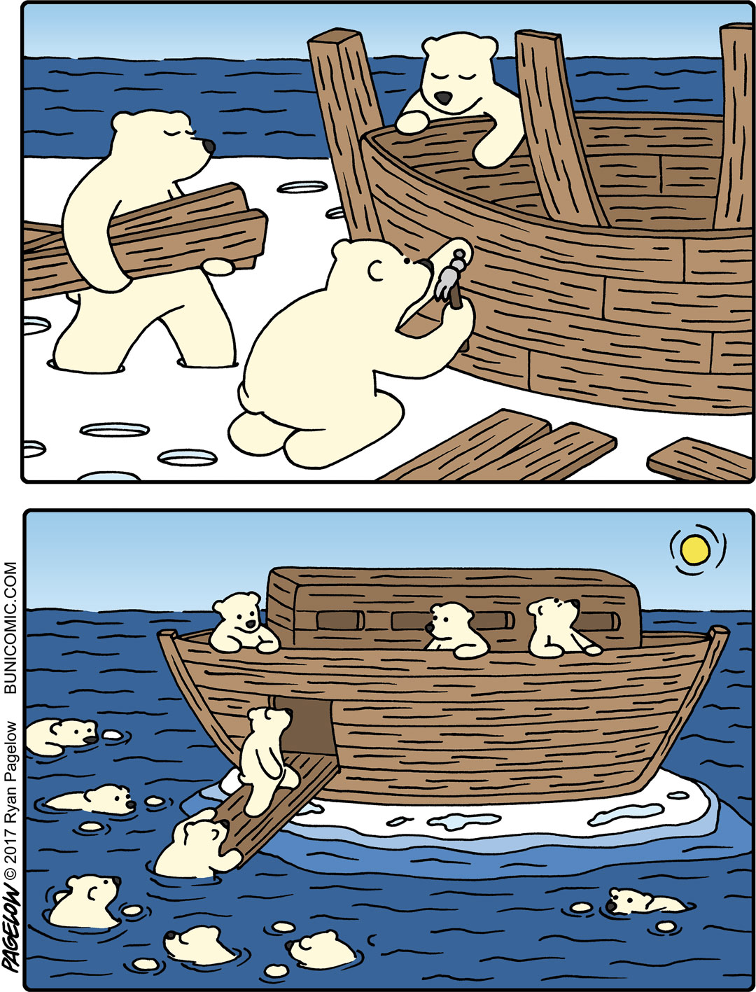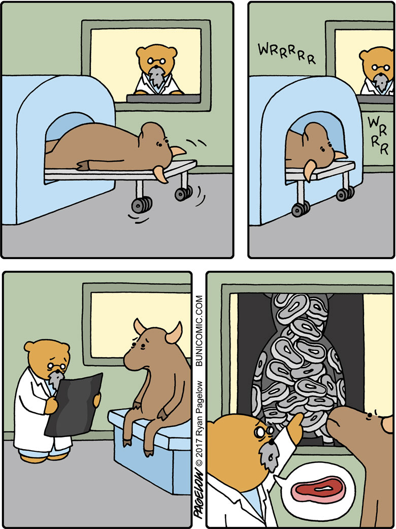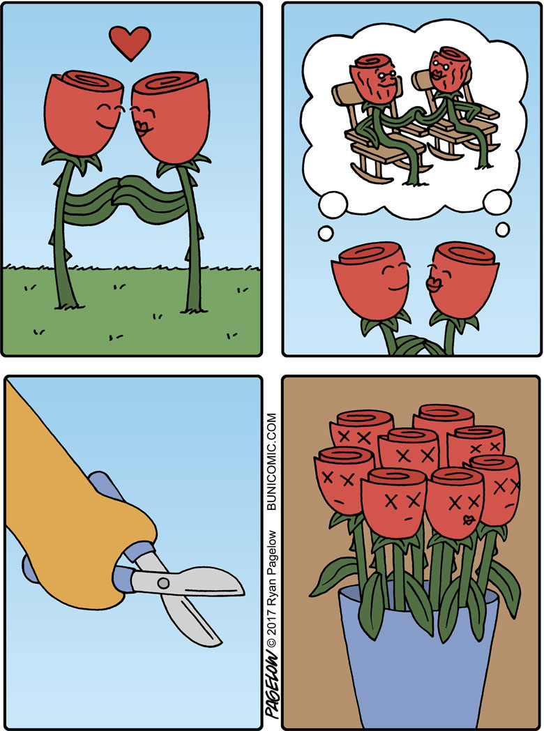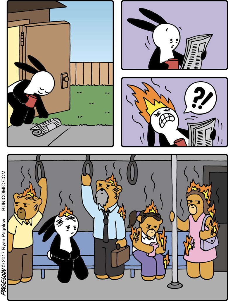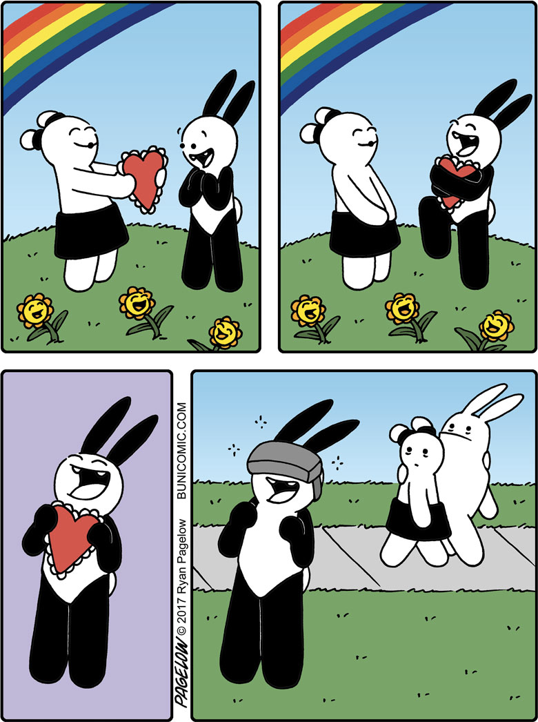 大多数漫画家都有着可观的作品数量以及丰富的主题内容,但瑞恩与他们不同,在长达10多年的时间里,他的漫画作品中的主角,只有一只兔子,却不是以连续剧情的方式呈现在我们眼前,这些漫画故事大都是由1到7幅不等的组合画面组成,每一个故事都可以单独拿来观看,从创作之初到今天,这位漫画家以这个兔子为主角创作了成百上千幅有趣的漫画作品。