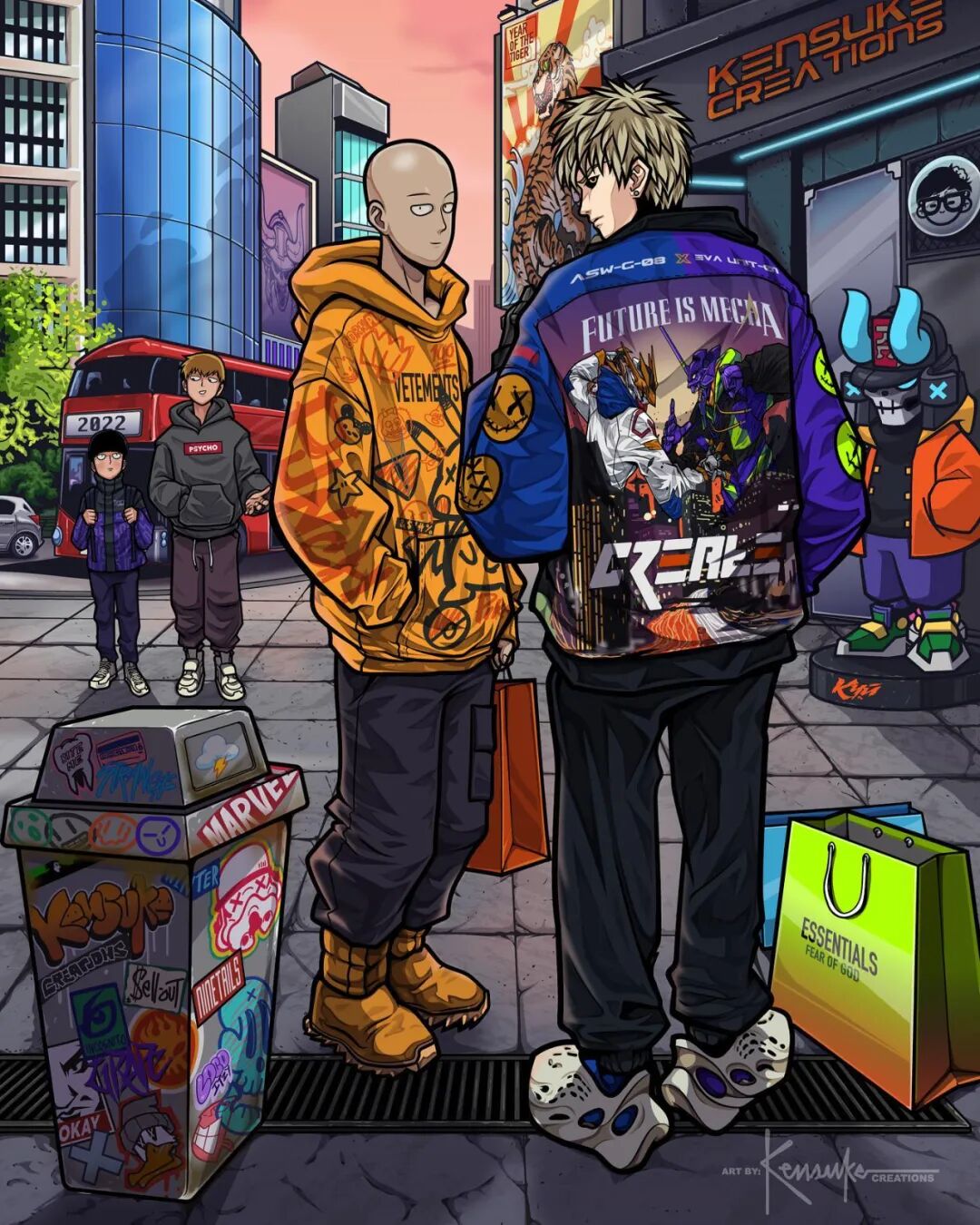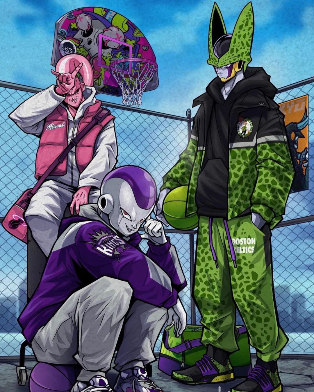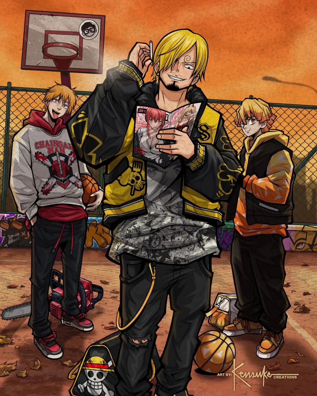 肯·亨斯利和我们很多人一样,也是看着这些动漫作品长大的,在成为插画家后,他也不断寻找绘画题材,最终将目标瞄准了这些动漫角色,这位插画家不仅将这些动漫角色变成了颇具“嘻哈”风格的现代人,还绘制了许多让人感觉兴奋的联动作品,像是《七龙珠》中的孙悟空、《火影忍者》中的鸣人、与《海贼王》中的路飞,这三部经典动漫主角以它们的最强状态出现在一张插图上,光是看到就让人感觉热血沸腾。